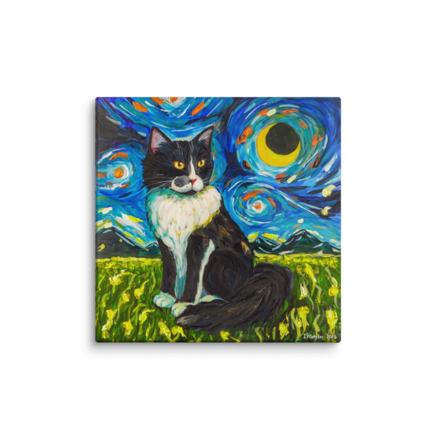 Created in Herradura, Costa Rica in June 2025, Guardian de las Estrellas was a custom 50 cm x 50 cm acrylic on canvas commission celebrating Gordo, a beloved cat. The collector envisioned their feline framed by a swirling starry night sky in the spirit of Van Gogh, and the result brought their vision to life.